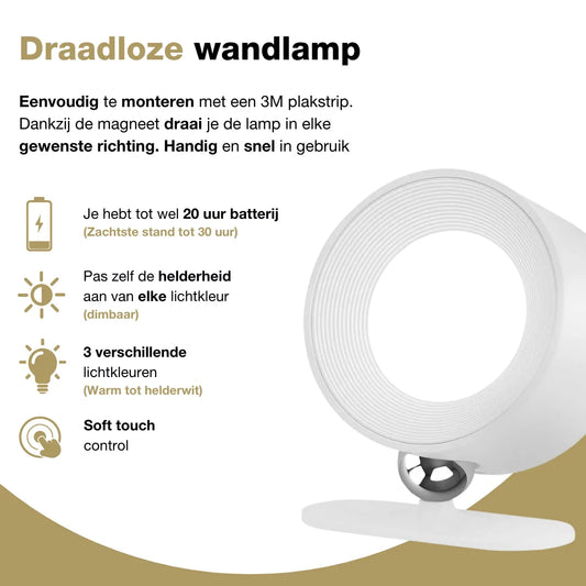 UitverkochtOplaadbare wandlamp - Dimbaar - Wit